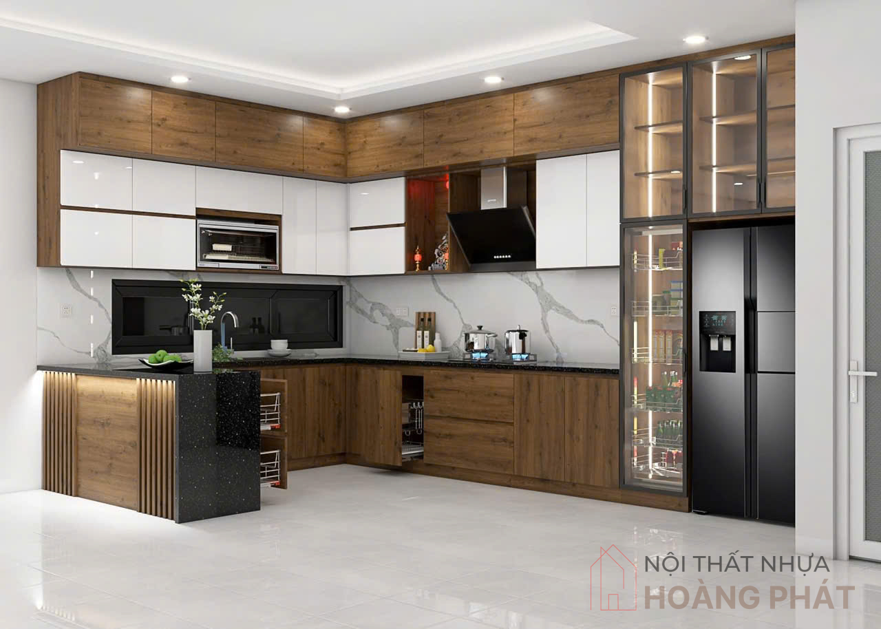 Mẫu tủ bếp nhựa hiện đại, giá rẻ được Nội Thất Nhựa Hoàng Phát thi công cho khách hàng