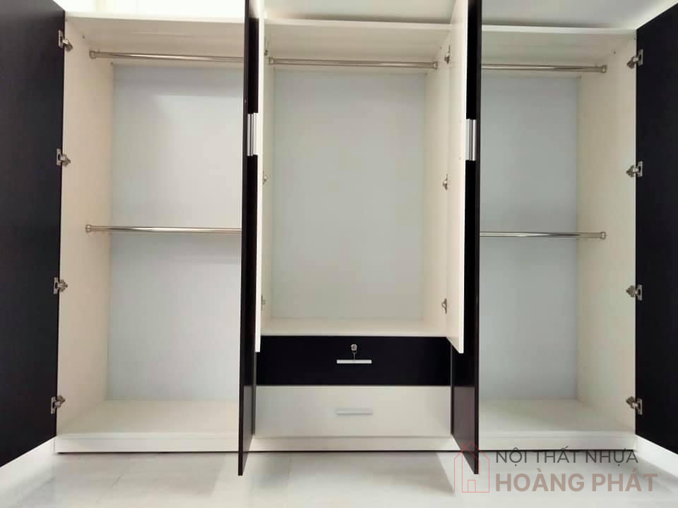 - Tiện ích: Tủ chia làm 6 cánh, 2 hộc kéo. thiết kế bên trong tùy chọn theo ý thích. tay nắm inox cao cấp